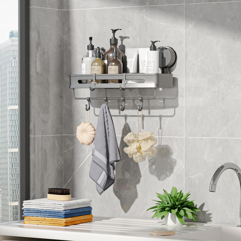 - Premium aluminium: made of high-quality, lightweight aluminium with an elegant gunmetal grey finish. This shower caddy defies moisture, water and soap - no comparison to cheap plastic that breaks or rusts! Our bathroom organiser remains flawless and stable, provides reliable storage space and can withstand daily use. Rustproof and durable!