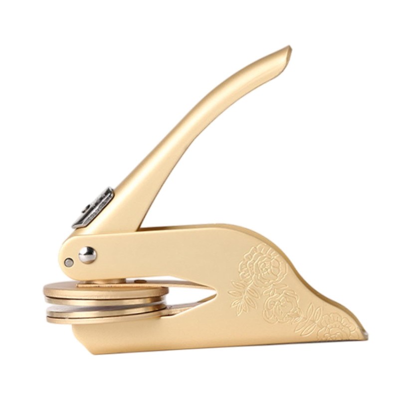 Fenteer Embosser Stamp Portable Stainless Steel Embossing Stamp Hand Tool Book Embosser Blank for Invitation Napkins Envelopes, Gold