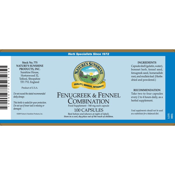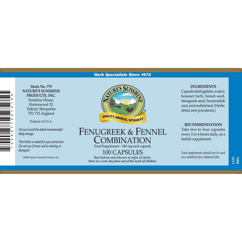 Fenugreek & Fennel Combination - for Respiratory Health - 100 Capsules