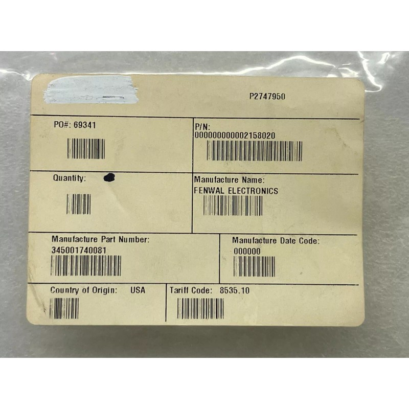 345001740081, FENWAL CERAMIC MANUAL RESET THERMOSTAT