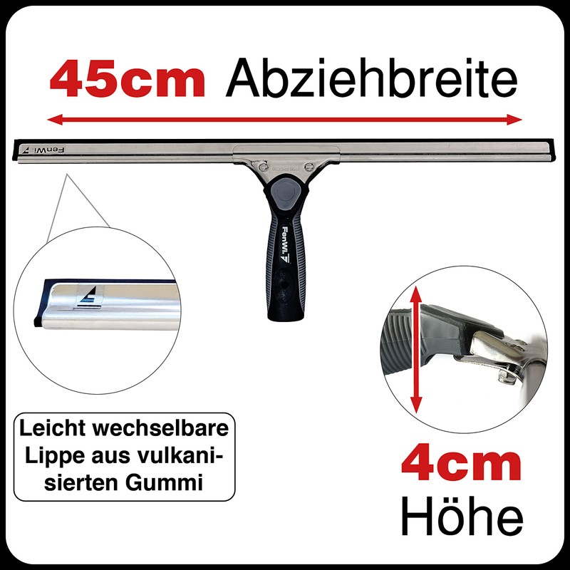 FenWi Window Squeegee in 45 cm Width, Shower Squeegee, Wide Squeegee with Stainless Steel Squeegee for Shop Windows and Large Surfaces
