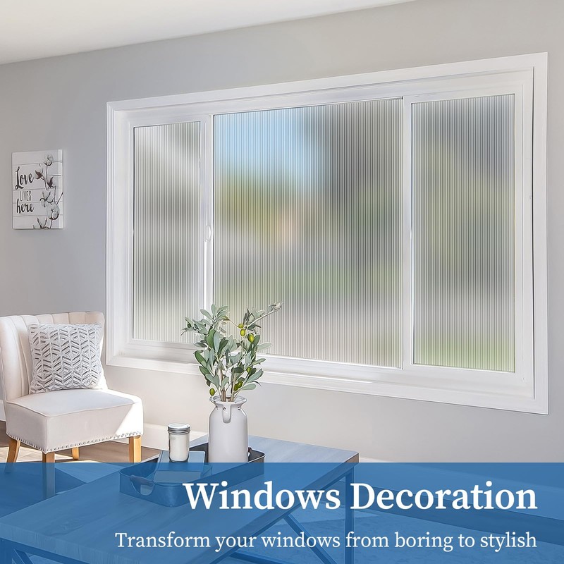 FEOMOS Window Privacy Film, Frosted Reeded Glass Film Decorative Window Decals, 3D Glass Stickers for Window Door Cabinet Non Adhesive 17.3 x 157.4 inches