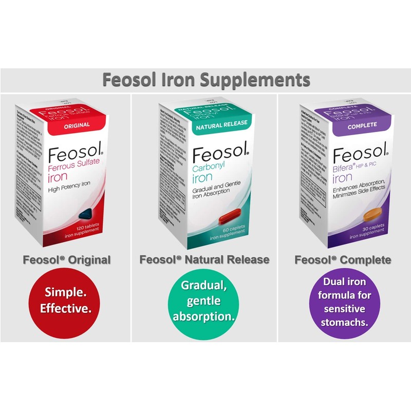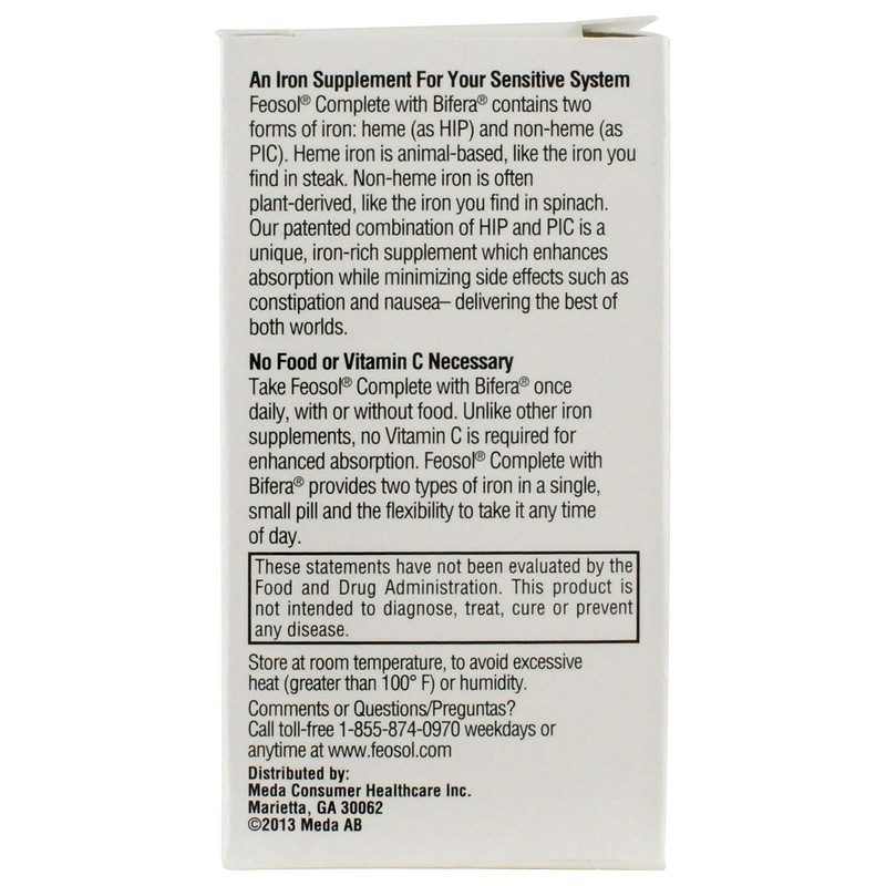 Feosol Complete Iron Supplement Caplets, Bifera Iron for High Absorption, Heme and Non-Heme Dual Action Minimizes Side Effects, 1 Per Day, Energy and Immune System Support, Pack of 2, Total 60 Count