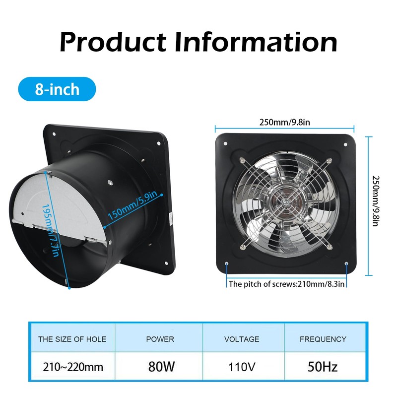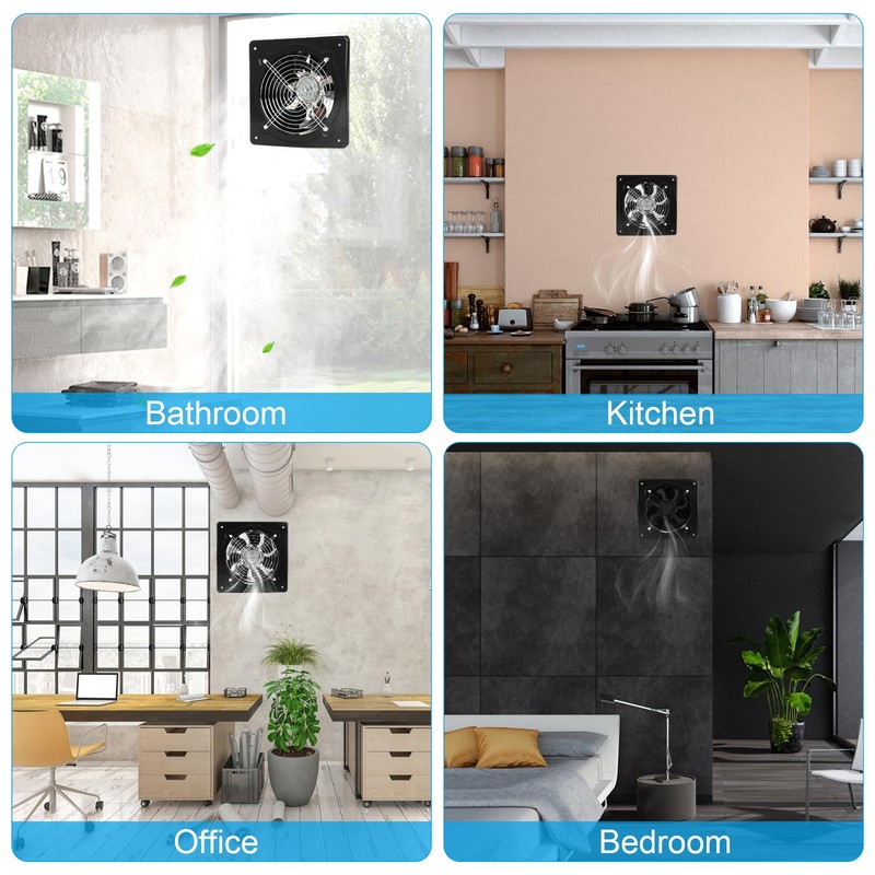 • [EFFICIENT VENTILATION]: Equipped with a solid copper AC motor and 7 large fan blades, the 8-inch ventilating fan effectively eliminates smoke, moisture and odors from a variety of spaces. It can be used in kitchens, bathrooms, garages, basements, home offices, outdoor events, etc. to maximize air circulation for you
