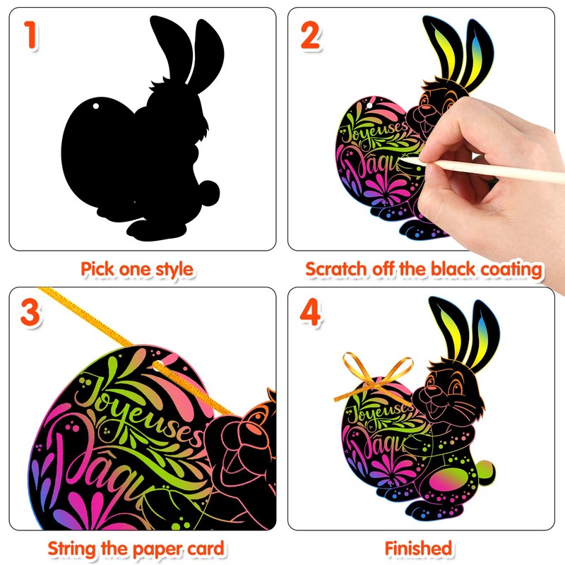 FEPITO 24 Pcs Easter Scratch Paper Kits Bunny Scratch Paper Black Doodle Pad ...