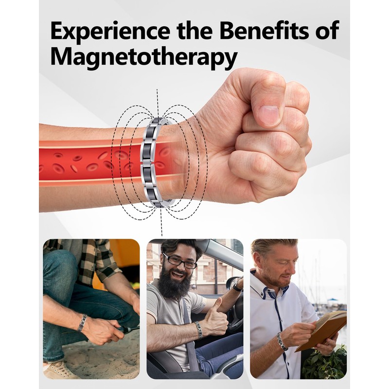Feraco Mens Magnetic Bracelets, Classic Balck Titanium Stainless Steel Bracelet with Natural Hematite Magnet Stones,Men's Jewelry Gifts, 8.66 inch