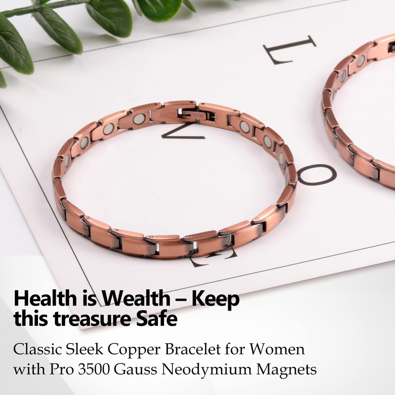 Feraco Pulsera de cobre magnético, pulsera de cobre puro al 99,99% para mujer, imanes ultra potentes con 3500 Gauss, pulsera ajustable con caja de regalo.