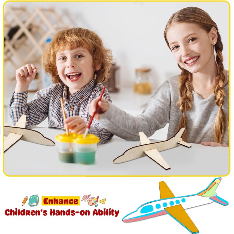 - 【What Will You Get】: This package include 24 pcs wooden model airplane, 2 pcs paint brushes, 1 pcs 6 pots of acrylic pain, are a good opportunity to exercise children's eye-hand coordination and bring their initiative into full play. Make Your Own 3D Airplane allow children to have more different experiences about this wooden airplane craft kits, and encorage their creative ability and improve the awareness of colors.