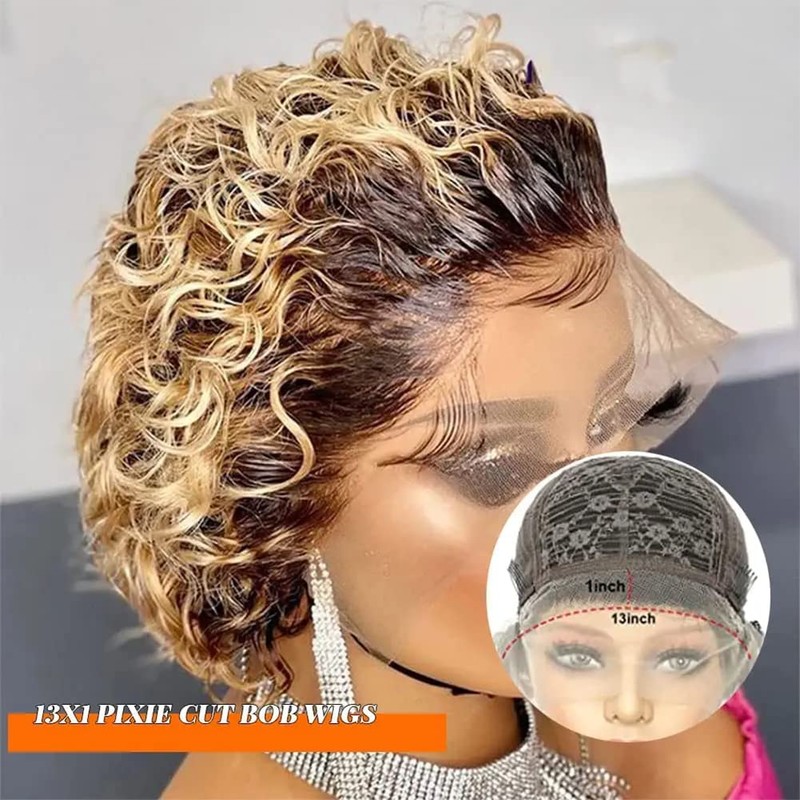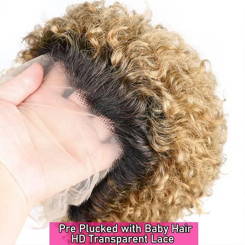 - Texture: Ombre Afro Curly Pixie Cut Lace Wigs 1B/27#