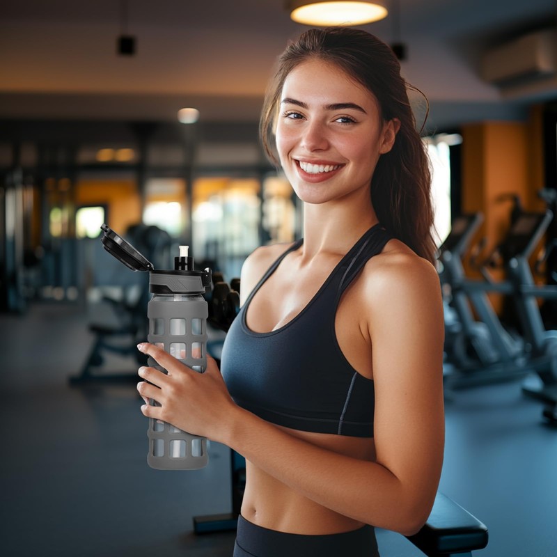 • VARIOUS USAGE SCENARIOS - This glass sports water bottle is suitable for various usage scenarios, ranging from home and the office to the gym, and even for outdoor activities. It is a practical and thoughtful gift for relatives and friends who pay attention to their health and drinking habits.