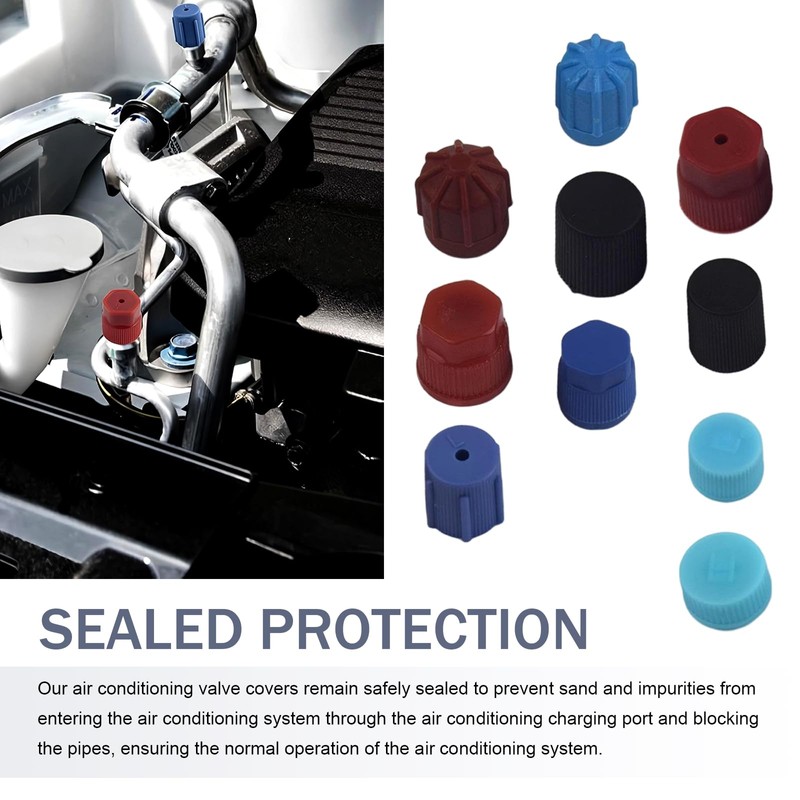 - Seal Protection: This air conditioning valve cover features an O-ring seal design, providing stable sealing performance to effectively prevent sand particles and debris from entering the system through the air conditioning filling port, preventing pipe blockages, gas leaks, and ensuring stable cooling performance.