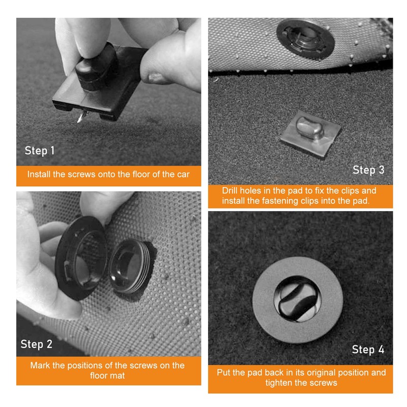 - Easy to Install: The installation of these carpet mat clips is very simple, just mark the screw positions on the car floor, then punch the holes for the clips on the floor mats, and finally install the clips on the floor mats and tighten the screws to complete.
