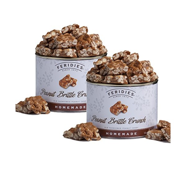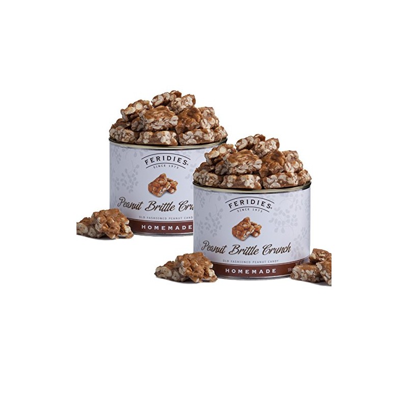 FERIDIES Unique Candy Nut Tins Homemade Peanut Brittle Crunch, Top Grade Virginia Peanuts, No Preservatives, 18oz Vacuum Sealed 1.12 Pound (Pack of 2) Peanut Brittle