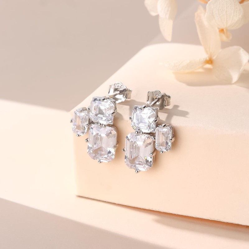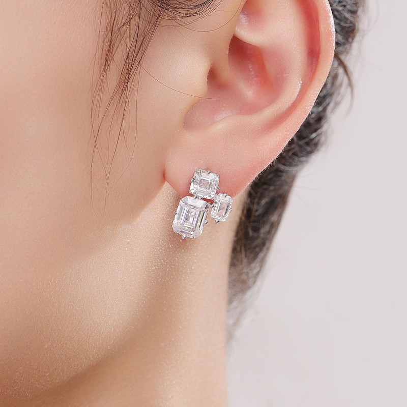 - 【Irregular Stone Design】 This pair of earrings has a irregular diamond stone design. The size of the biggest emerald cut diamond earring is 7*9mm. The length of diamond earrings is 17mm. 925 sterling silver earrings plated with white gold. Fashionable and elegant in the sun, highly polished flat back make the diamond earrings absolutely comfortable to wear.