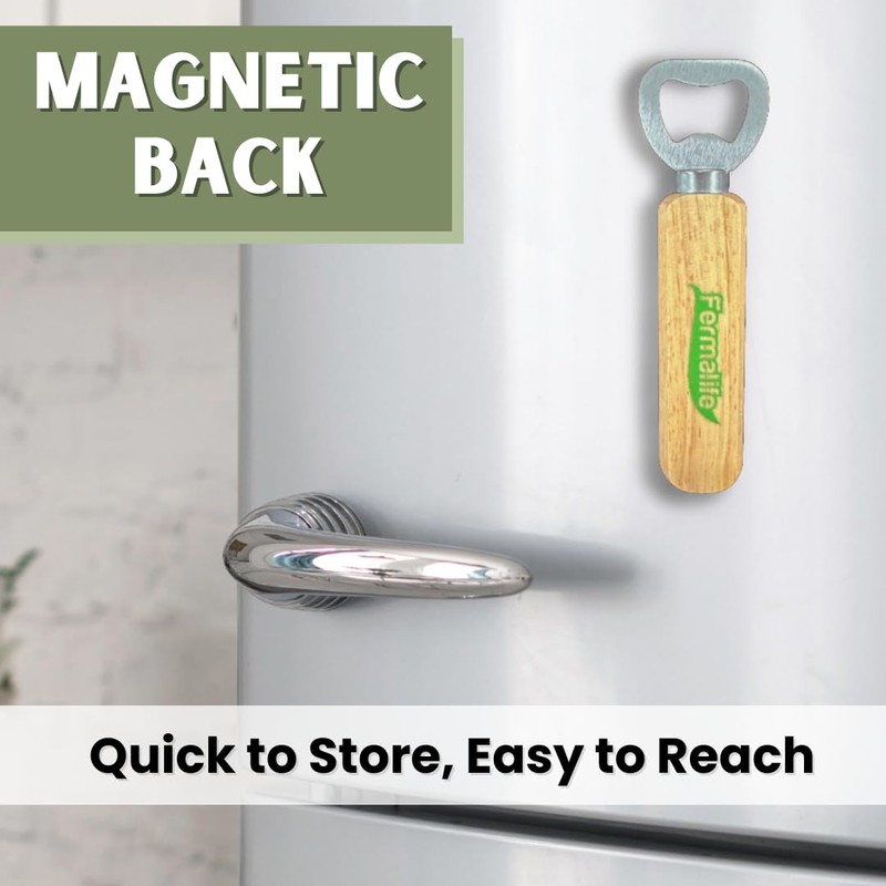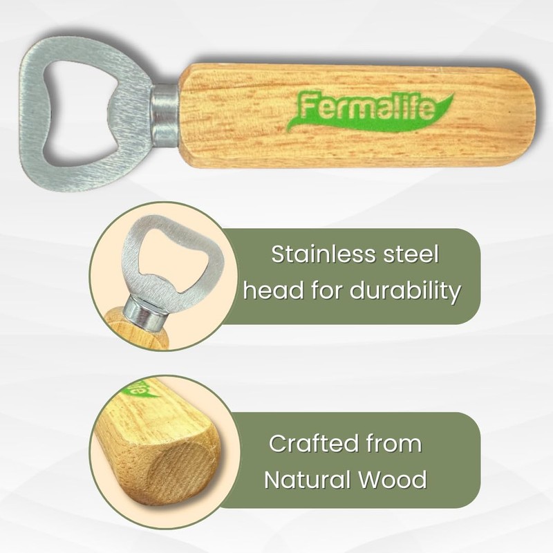 FERMALIFE - Wooden Bottle Opener, Sturdy, Engraveable for Soft Drinks, Apple Cider, Bottles, Beer at Bars, Restaurant, Home, Kitchen, Camping