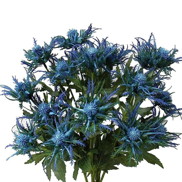 - Total 5 pack blue real looking artificial Thistle flowers.
