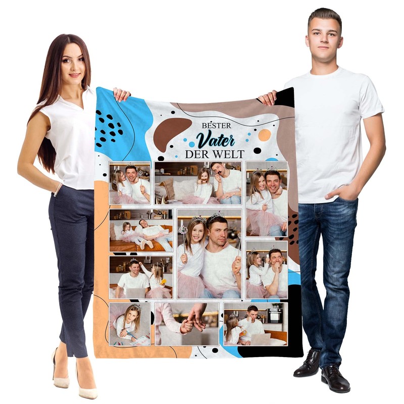 Ferocity Personalised Photo Blanket with Your Own Photo; Super Soft Extra Cosy Cuddly Blanket Bester Papa 150 x 200 cm; Sofa Blanket Collage with Wishes or Poems [081]