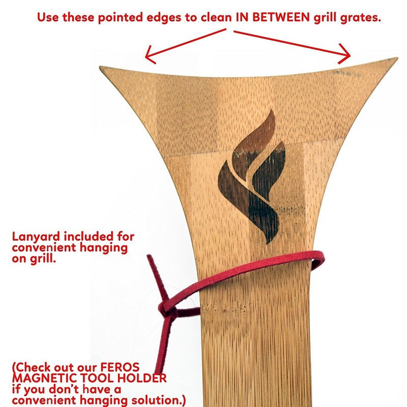 FEROS Safer Scraper - Wood BBQ Wooden Grill Cleaner - Cleans top and Between Barbecue grates. Use to Oil & Clean Barbeque. Sustainable Replacement for Wire Bristle Brush