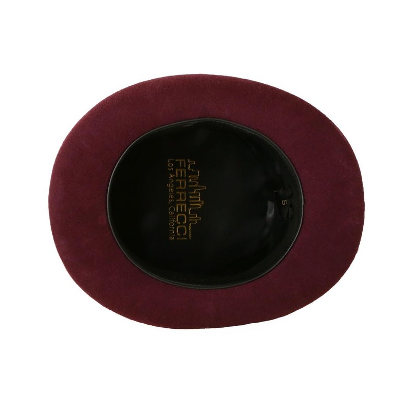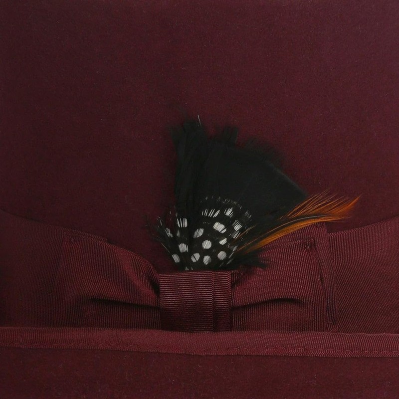 Ferrecci 100% Wool Top Hat Satin Lined with Grosgrain Ribbon and Removable Feather Burgundy Tall Tophat - Unisex, Men, Women