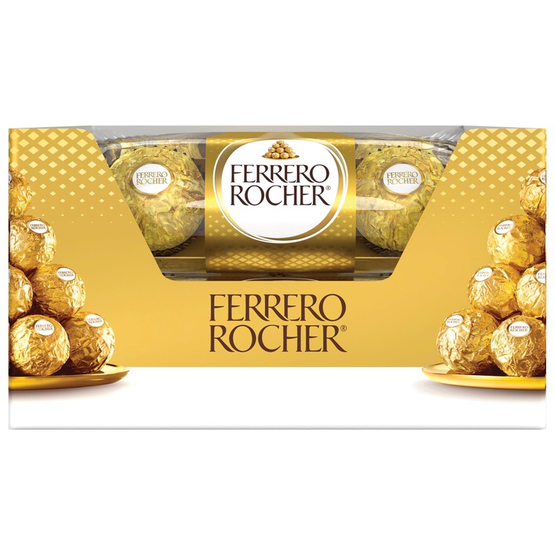 Ferrero Rocher offers a unique taste experience of contrasting layers: a whole crunchy hazelnut in the heart, a delicious creamy hazelnut filling, a crisp wafer shell covered with chocolate and gently roasted pieces. And thanks to its inimitable golden wrapper Ferrero Rocher is even more unique and special. The iconic original.