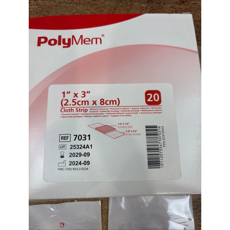 FERRIS Polymem 1" x 3" Cloth Strip PolyMeric Membrane Dressing BX of 20
