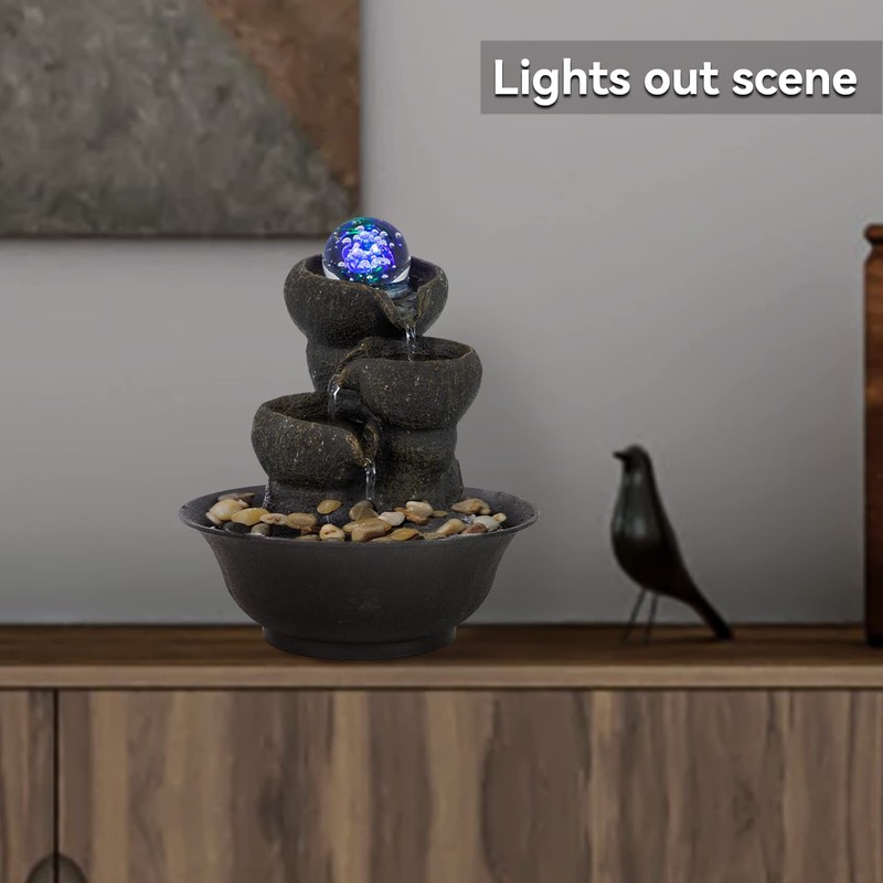 - LIGHTS UP THE MOOD: This 5-tier relaxing table top fountain decoration has a subtle LED illuminated lighting effect that is really pleasing to the eye and that’s sure to improve your comfort
