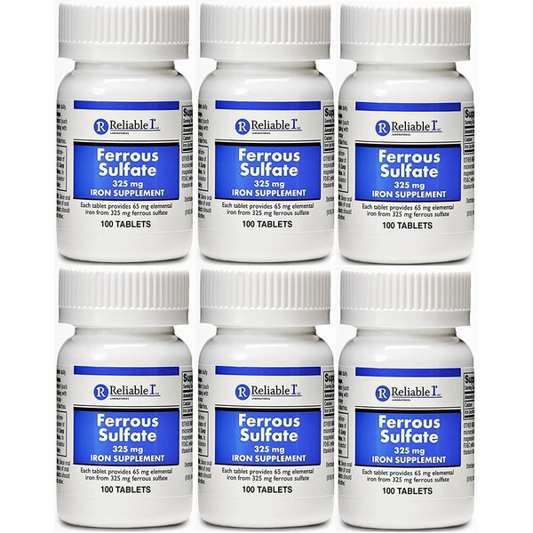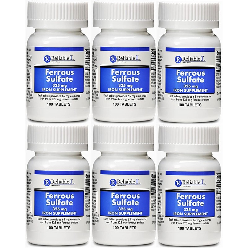 Ferrous Sulfate Iron 325 mg Generic for Feosol 100 Tablets PACK of 6