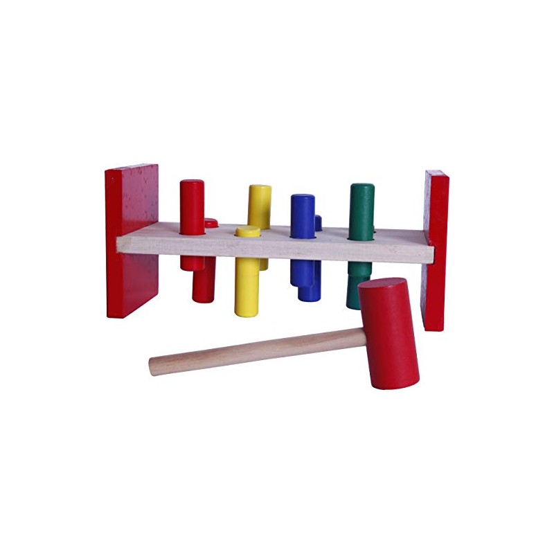 • A wooden hammer set: The wooden cylinders change from one side to the bottom