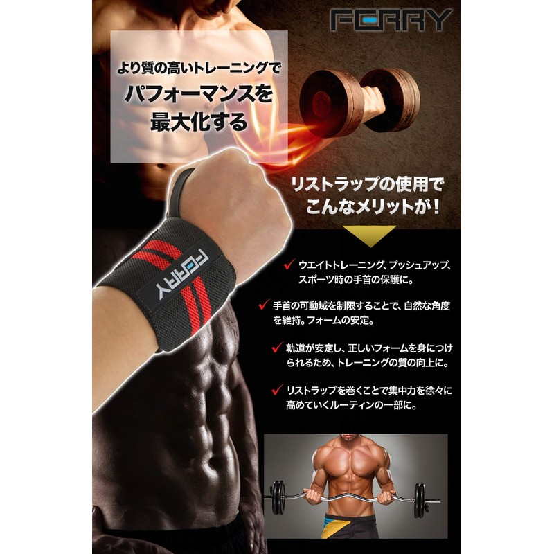 FERRY Wrist Wraps for Weight Training, Wrist Fixing (Pack of 2), Red/White