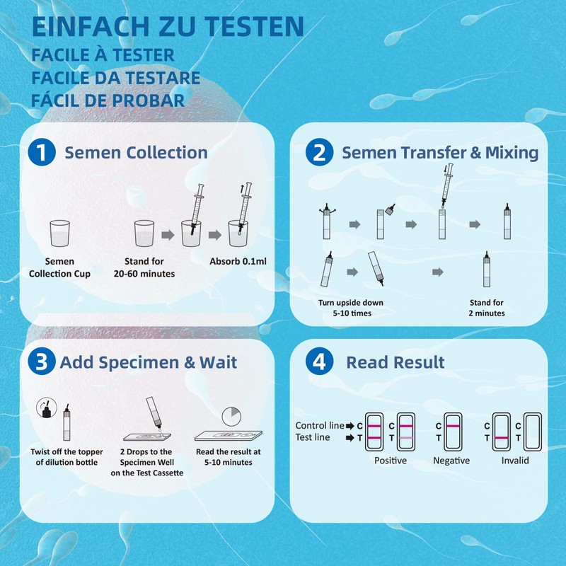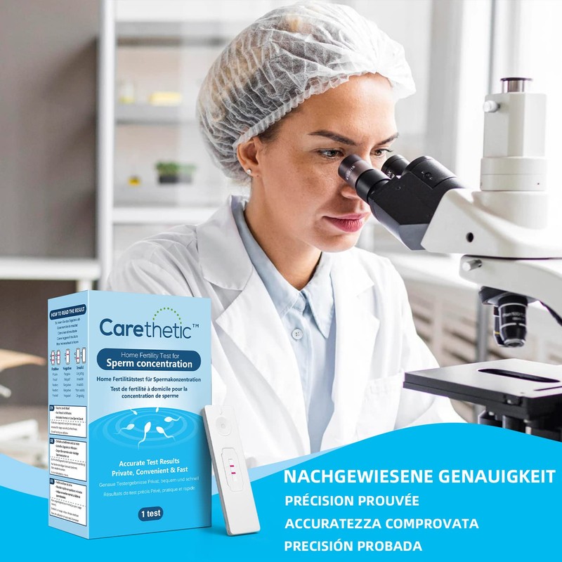 - Private, comfortable and fast. With the Carethetic fertility test for men, you can easily and comfortably perform the test at home. You only need 5 minutes to read the results.