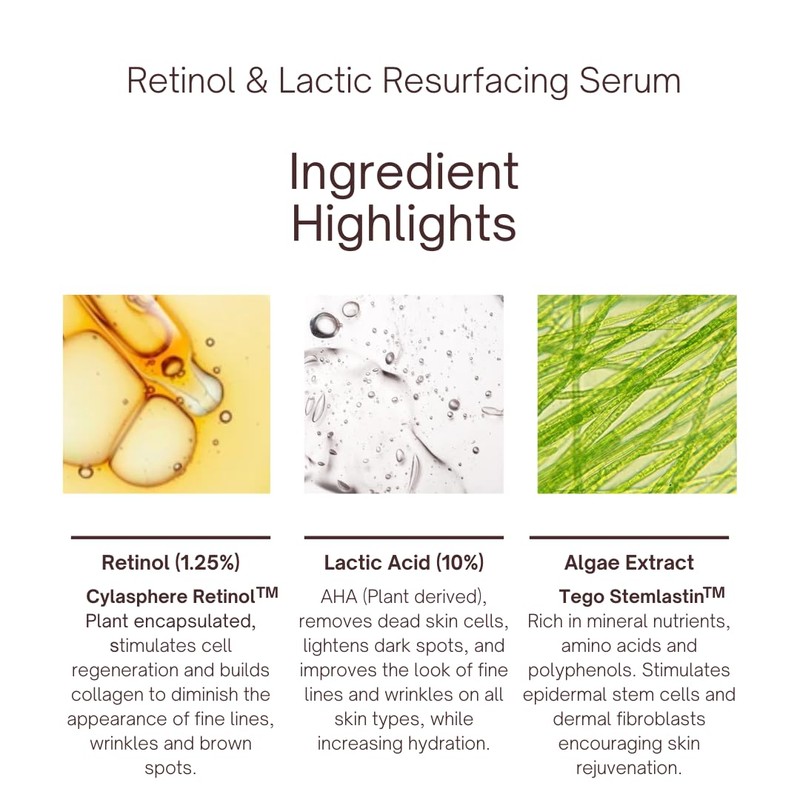 - ENCAPSULATED RETINOL (1.25%) - Encapsulated in plant microspheres offers gradual release and enhanced efficacy with low irritant potential. Retinol helps stimulate cell regeneration and builds collagen to diminish the appearance of fine lines, wrinkles and brown spots. Vitamin A helps to minimize pore size, while addressing blemishes and blotchiness associated with problematic acneic or mature skin.
