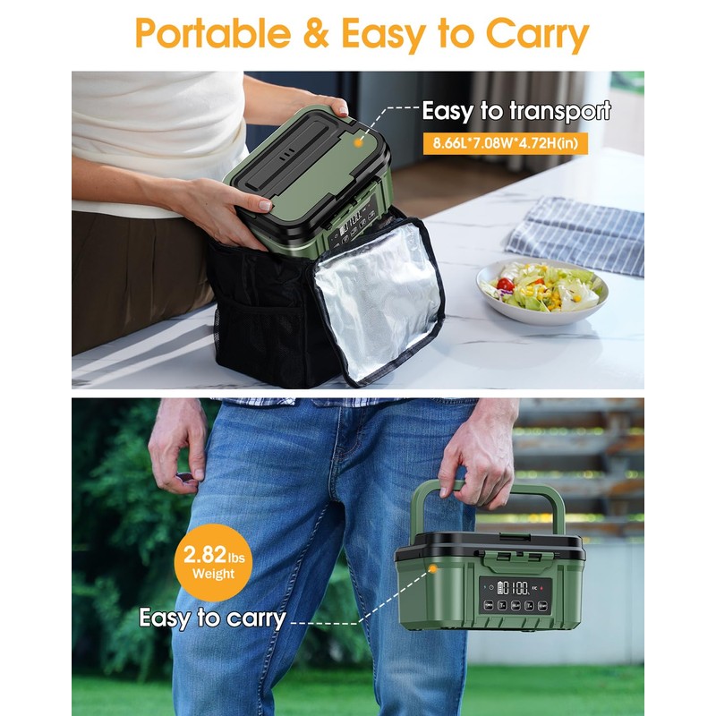 - FOOD-GRADE SAFE & EASY TO CLEAN – Made with BPA-free, lead-free food-grade PP plastic and durable stainless steel. Heats quietly without steam or odor. Stainless steel containers are dishwasher-safe, and the hidden handle makes carrying effortless. (Note: Do not immerse the heating base in water or add water directly to it.)