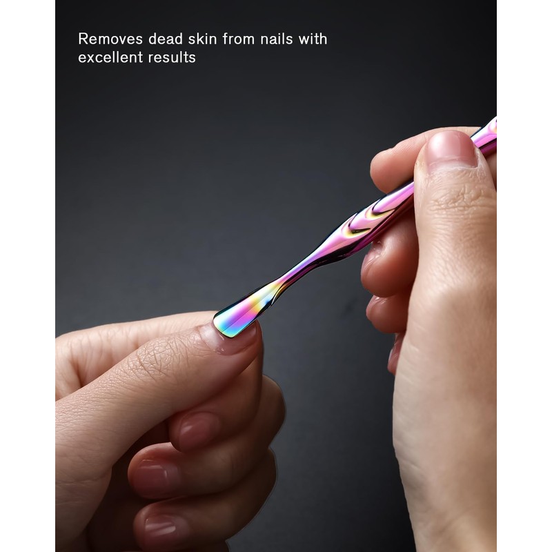 FERYES Cuticle Pusher with Fork, 2-in-1 Cuticle Trimmer Nail Care Tool, Stainless Steel Cuticle Remover Tool for Manicures and Pedicures -Rainbow