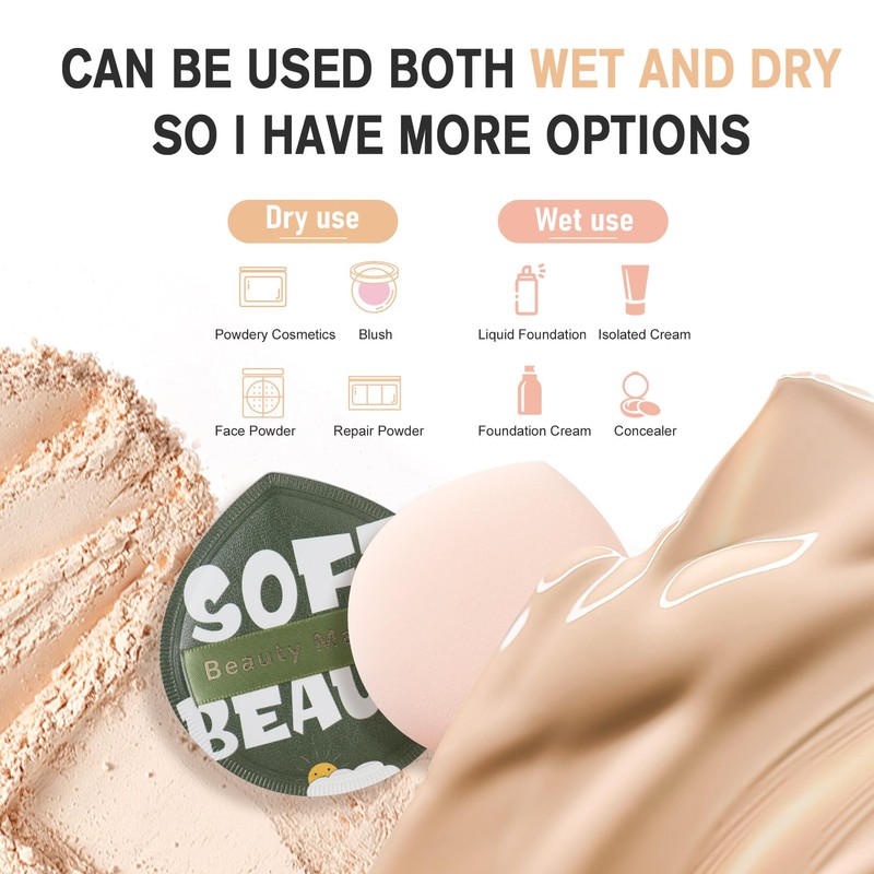 - Precise, Lightweight, Less Heavy- The triangular shape of our powder puff allows you to apply makeup flawlessly and precisely. The tapered part is perfect for hard-to-reach areas, such as around the nose and under the eyes. The flat base allows you to apply makeup to larger areas of your face.