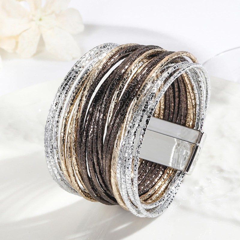 - 【PREMIUM MATERIAL】 This leather wrap bracelet is carefully crafted by handmade with high quality leather which is print leopard pattern. Multilayer environmental bracelet is no fade, no pungent smell, also comfort to wear. Super strong clasp is easy to wear. And the metal pipe is made of brass, lead-free and nickel-free. It has excellent craftsmanship and technology.