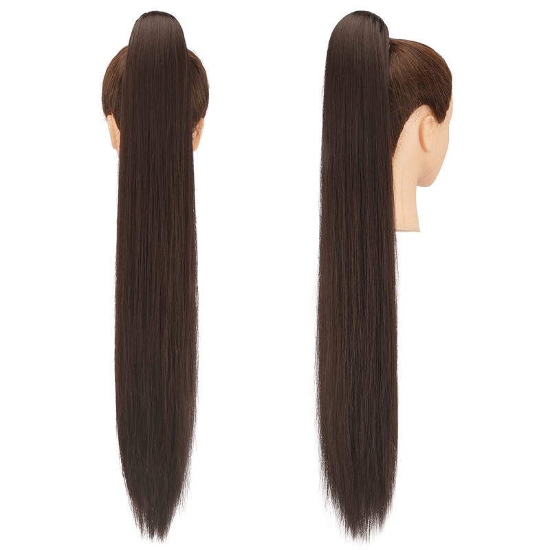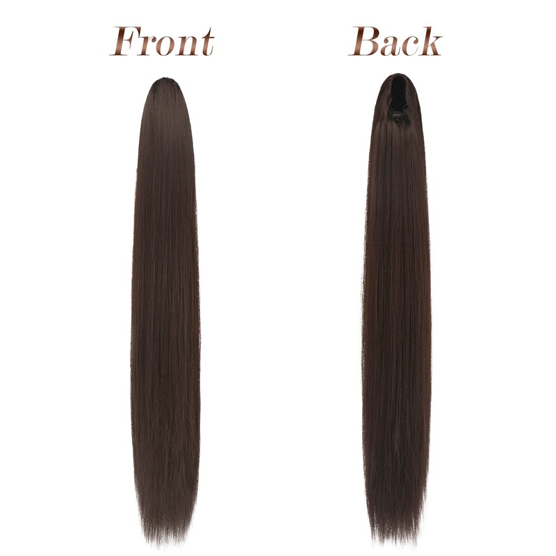 FESHFEN Ponytail Extensions with Drawstring, Long Straight Braid, Drawstring Ponytail Hairpiece, Straight Hair Extensions, Synthetic Drawstring Ponytail Extension for Women, 70 cm, Brown