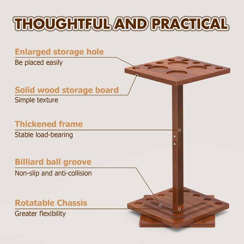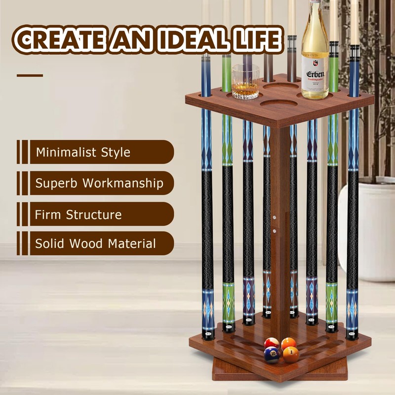 • Sturdy Construction: FESHIR Pool cue stick holder crafted with durable solid wood materials which retains the natural touch of wood, beautifully crafted. Heavy duty wooden center post makes this cue rack very sturdy, durable and not easy to break.(Note: This item is Cue Rack Only. Pool table accessories are not included.)