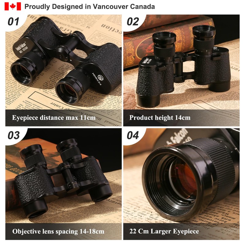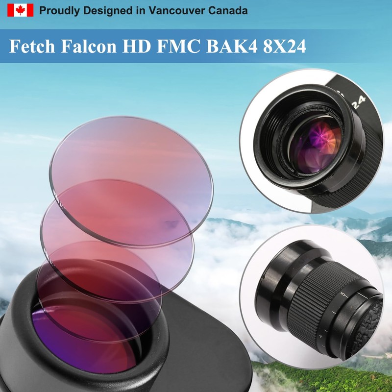 Fetch Falcon Full Metal Body FMC HD 8x24 Binoculars(Third Generation High-Powered,Water-Resistance and Portable) Ideal for Camping, Hunting, Tourism, and Mountain Climbing (Black)