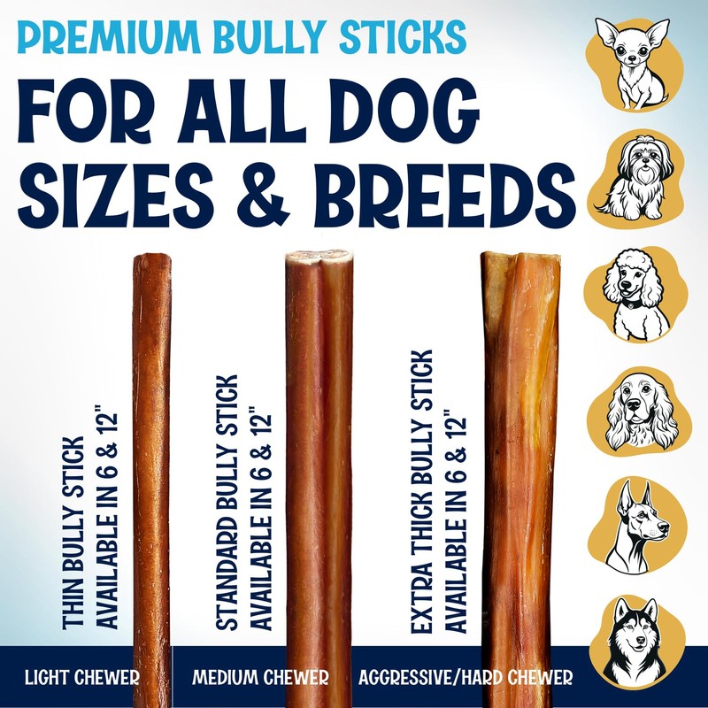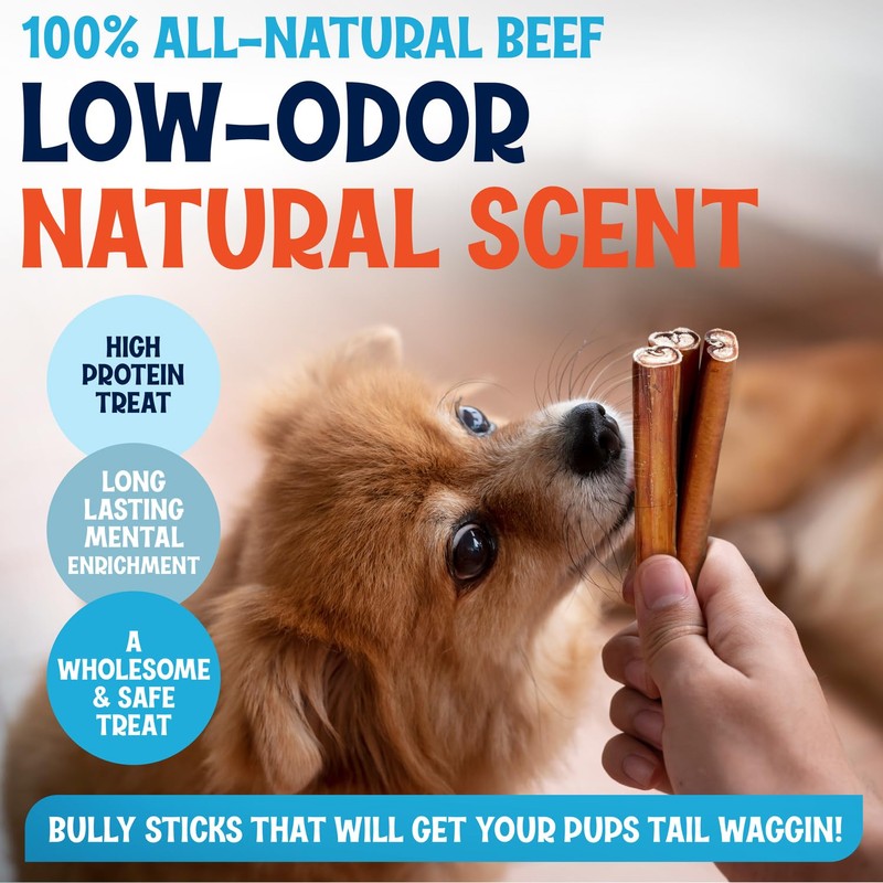 FETCHERONI Odor-Free Bully Sticks (6 Inch, 25 Pack), 1 lb. Bag, Fully Digestible 100% Beef Pizzle Chews, Grass-Fed, Non-GMO, Grain-Free, Natural Long-Lasting Chews for Small & Large Dogs