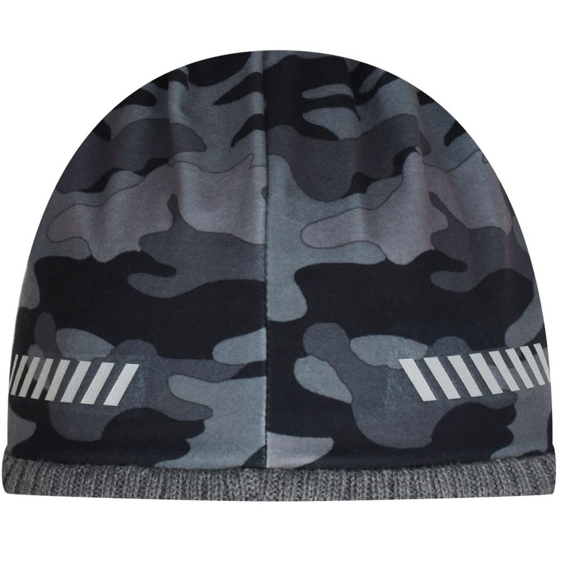 FETHAR Wool Athletic/Running Beanie - Reversible Fleece Hat with Reflective Accents (ATHT/Black Camo)