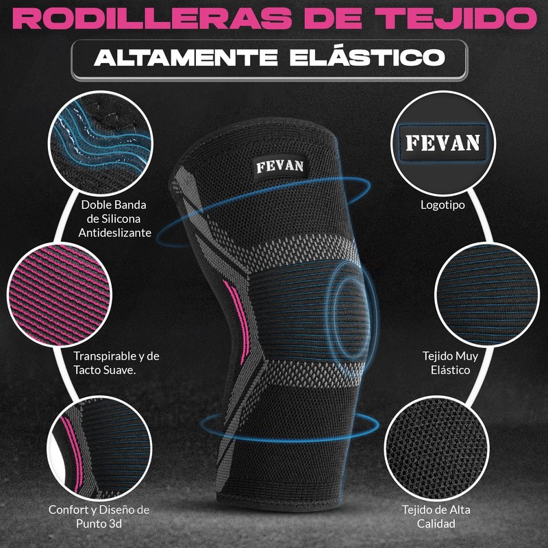 FEVAN 2er-Pack Knieschoner für Meniskus und Band, verstellbar, vollständige Patella-Knieschützer, Crossfit, Uni, aus Neopren mit Silikon (Rosa, S)