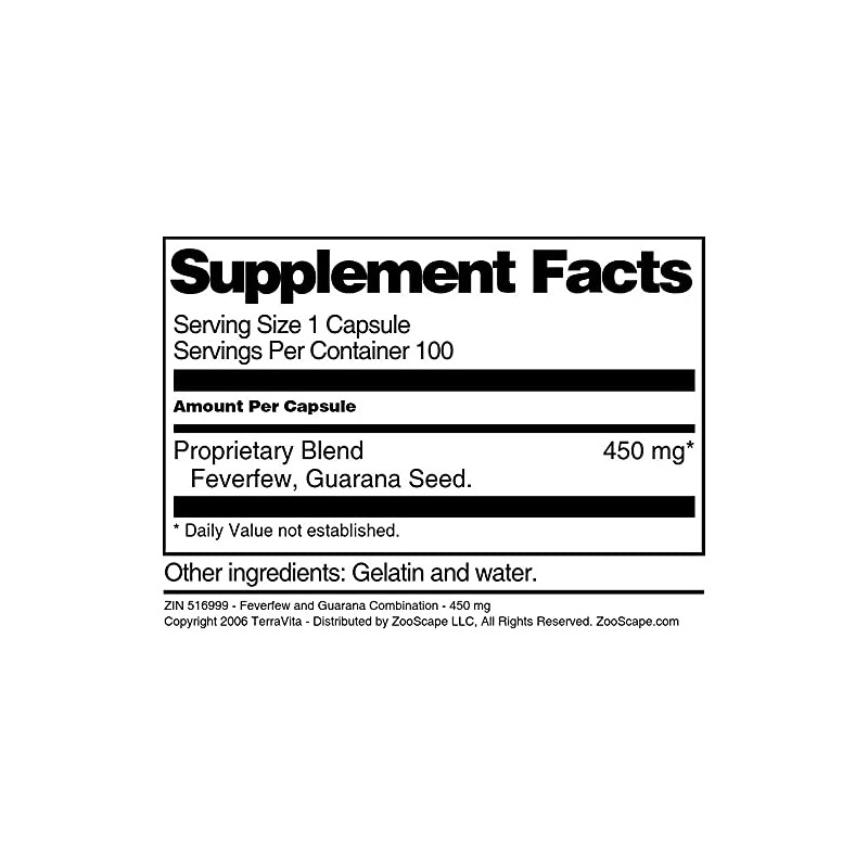 - Feverfew and Guarana Combination - 450 mg (100 capsules, ZIN: 516999)