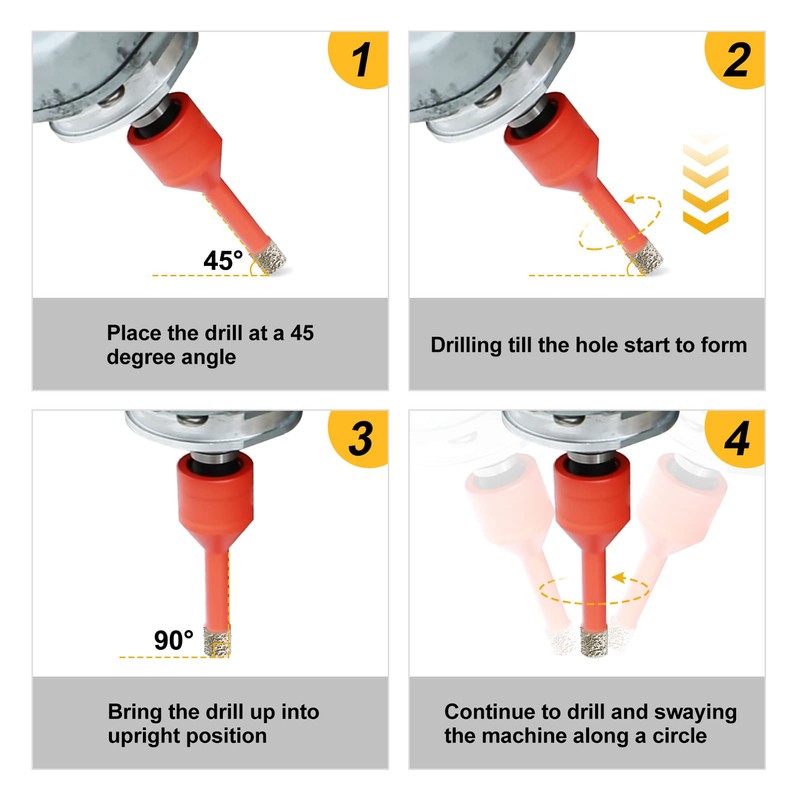- 5.Diamond core bits are worked great for dry drilling holes through porcelain tile, ceramics, bathroom tile,marble,glass,granite,stone,masonry, brick with ease