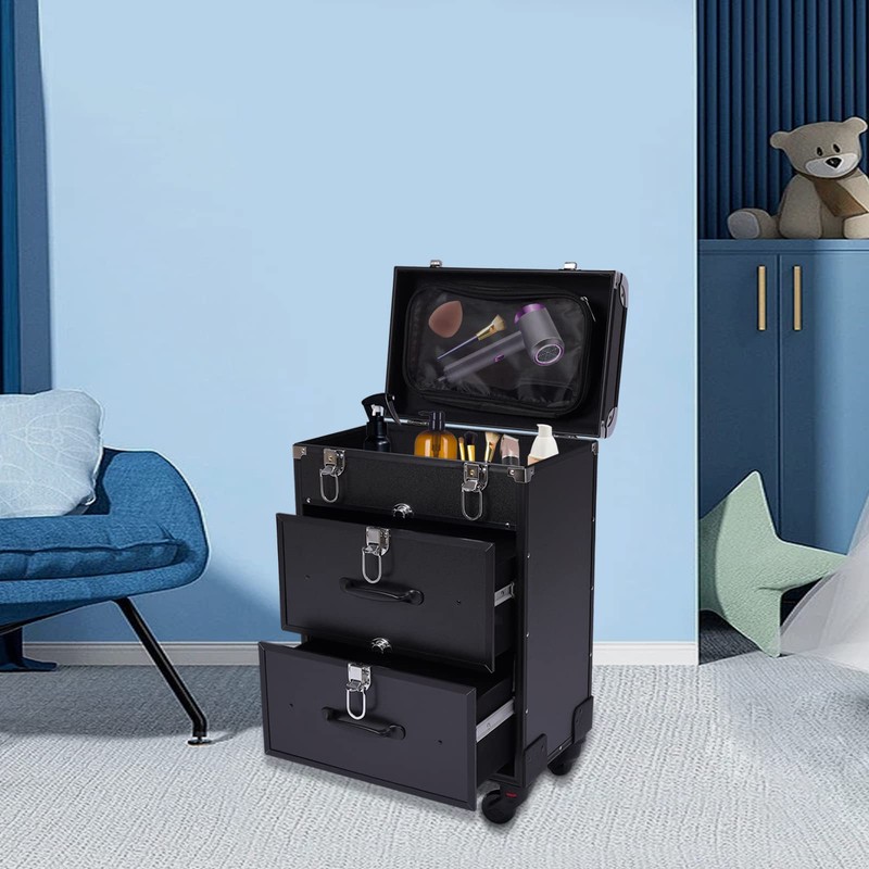 - Large Capacity: This rolling makeup case has 3 tiers, different functions and sizes of beauty products are stored in the corresponding drawers and compartments to keep the tools in order.