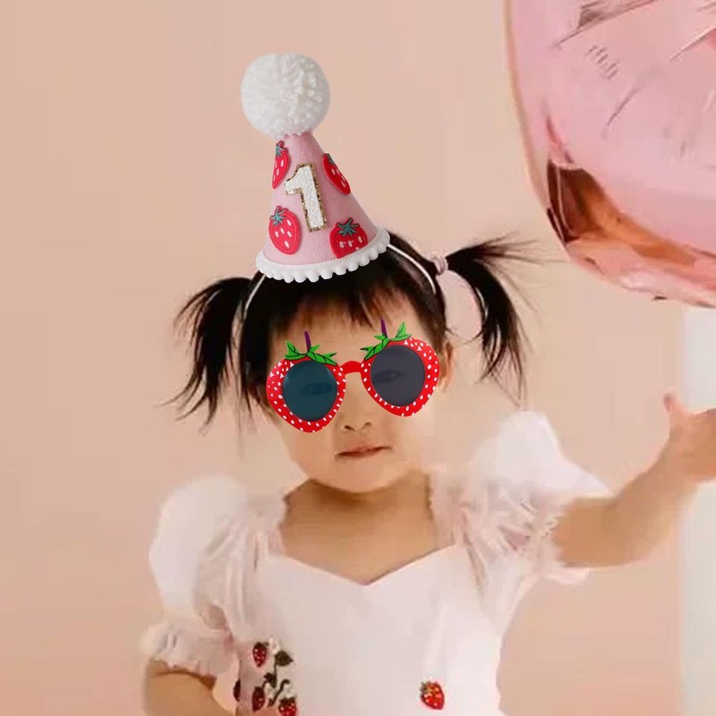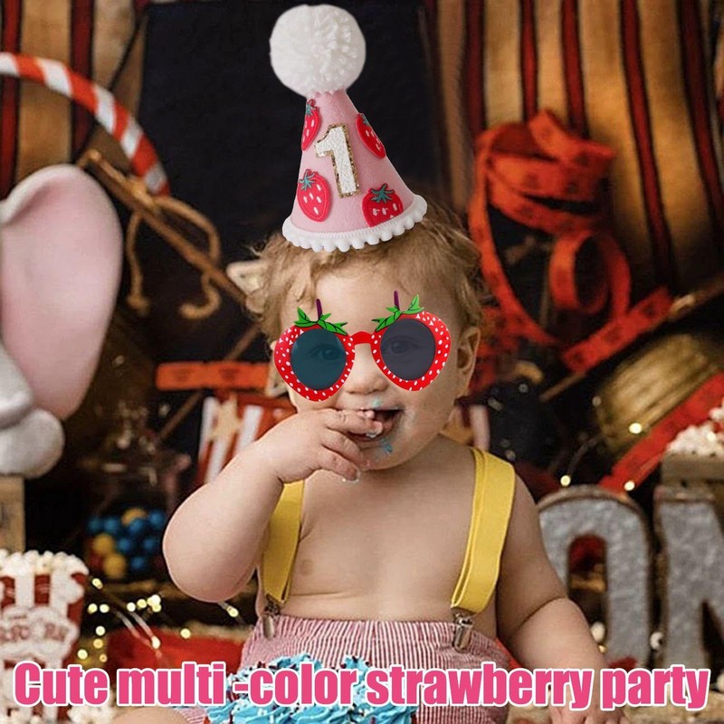 - 【Creative Design】 This Product Has A Unique Design. The Birthday Hat Adopts A Strawberry Crown Design. The Color Is Bright And Cute, Which Is Very Suitable For A 1-Year-Old Baby'S Birthday Party. The Interesting Shape Of The Strawberry Glasses Increases The Fun And Creativity Of Shooting, Making It An Ideal Choice For Party Props.