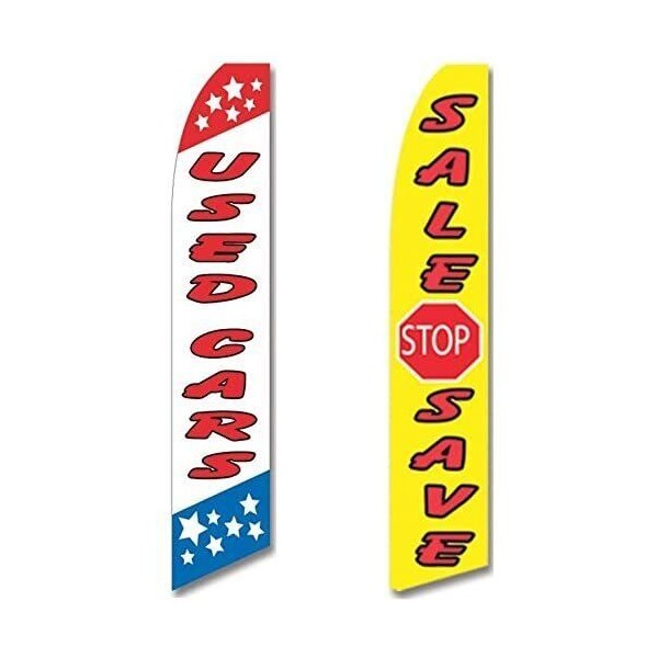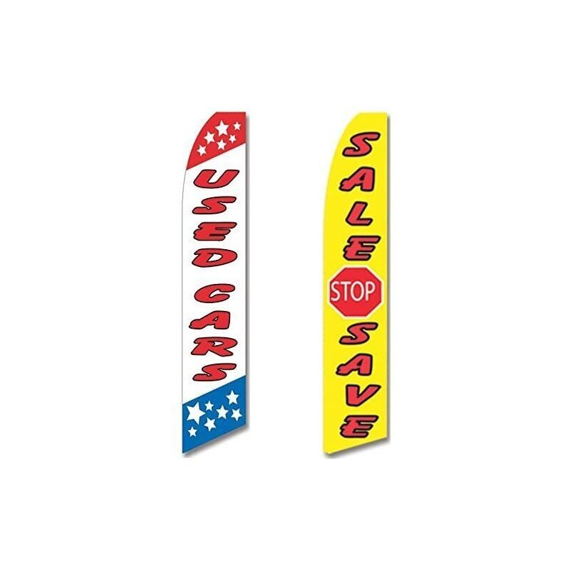 FFN Swooper Flags 2 For 1 Pack Used Cars Sale Stop Save Red Blue White Yellow