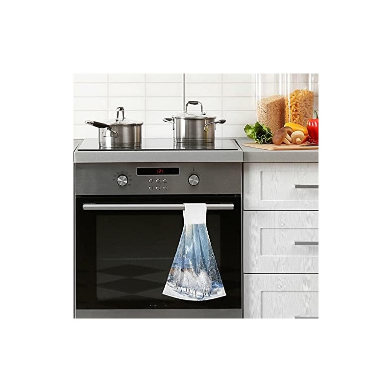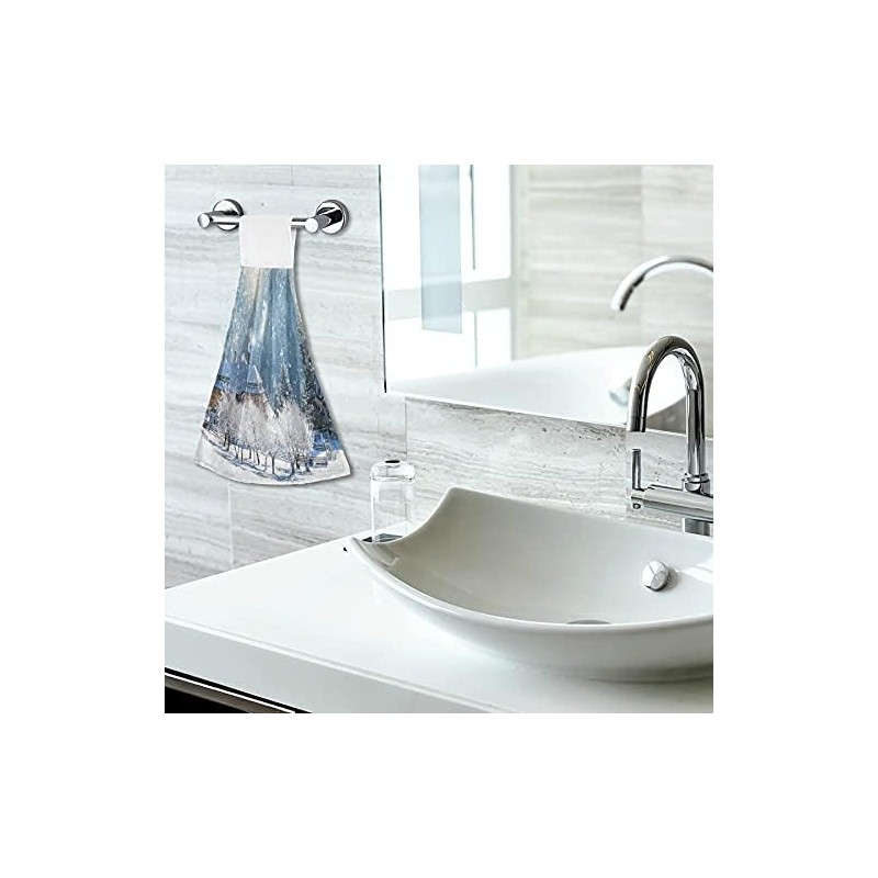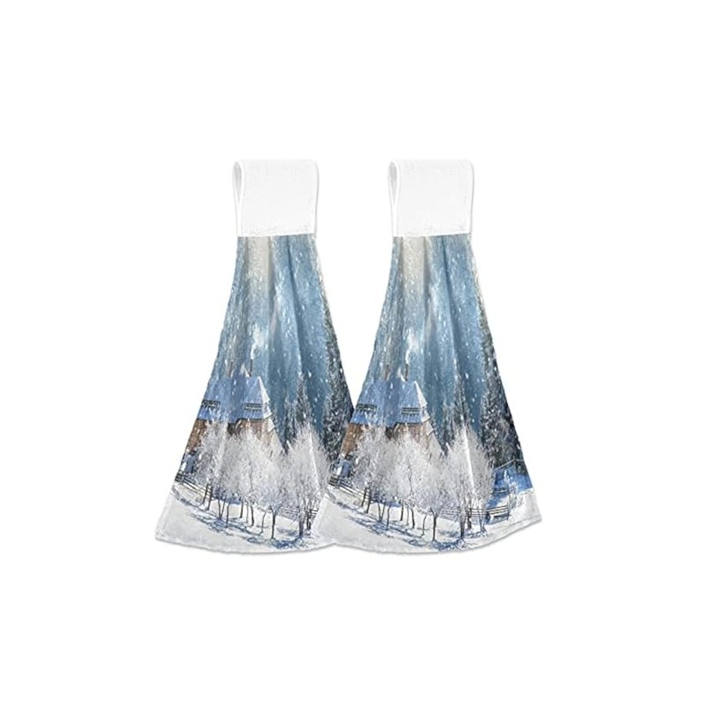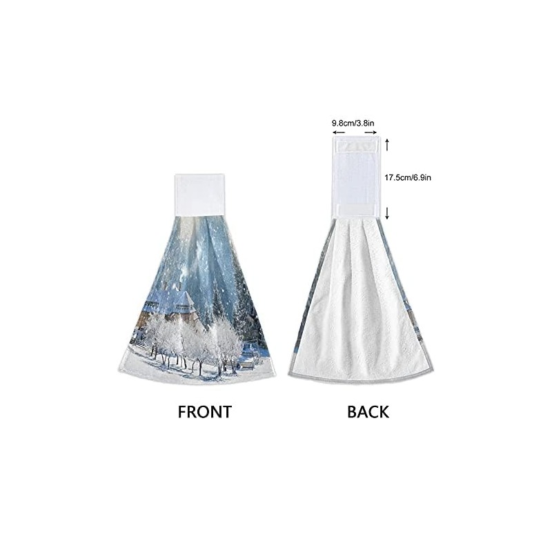 FFYHO Winter Rural Village Hanging Kitchen Towel with Loop 2 Pack Beautiful Snowy Time Hand Towels Soft Microfiber Coral Velvet Tie Towel Decor for Bathroom Oven Absorbent Washcloth