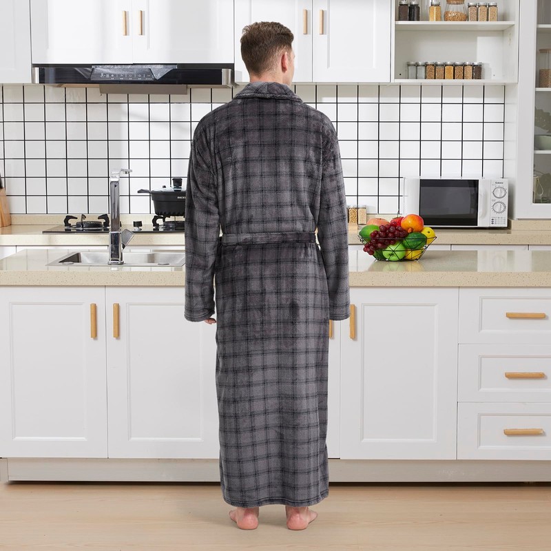 - Thoughtful And Heartwarming Surprise: Our ankle-length fleece plush bathrobe, whether it's the choice of color or the checkered design, all reflecting its luxury and restraint. The soft and cozy feel of the men's bathrobe allows the wearer to feel the warmth of the bathrobe anytime and anywhere. Plush texture can better bring people into a comfortable state and maintain a relaxed mood. Having a comfy bathrobe is the most thoughtful choice for a man's wardrobe.