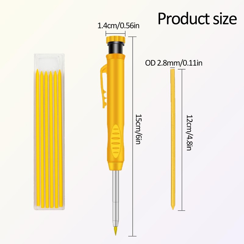 - 【Multi Scenario Applicability】:The carpenter mechanical pencils suitable for materials such as paper, wood, plastic, etc. The black pen core is suitable for long-term marking, the yellow pen core is suitable for temporary marking, and the adjustment function meets the thickness requirements