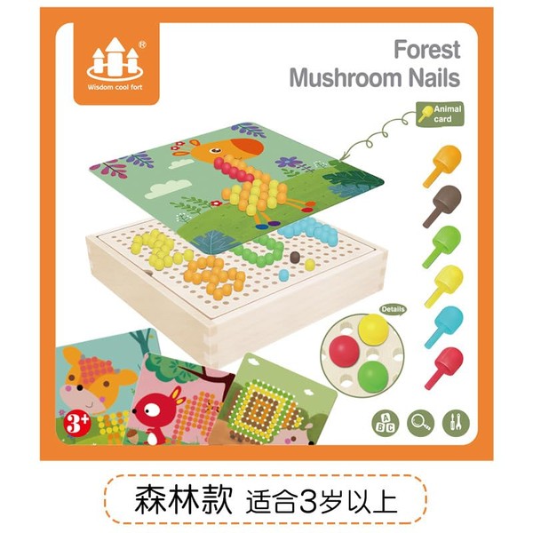 - Puzzle toy: colorful mushroom pens are arranged by children according to the colors on the wooden board, which can improve their concentration and creativity, and also train their thinking by developing their own ideas.